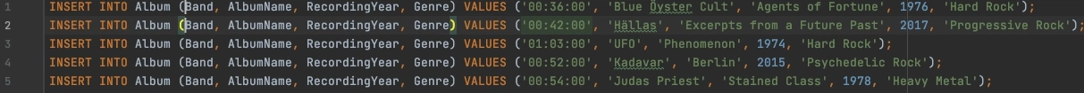 Die Animation zeigt einen Fall, der auch mit Suchen & Ersetzen gelöst werden kann. Der Multi-Cursor ist sogar noch hilfreicher, wenn du jedem Insert-Statement einen Wert für eine Spalte hinzufügen musst, die Zeichenspalte aber in jeder Zeile eine andere ist. Normalerweise würde man die Zeilen manuell nacheinander bearbeiten. Die Verwendung mehrerer Cursor kann schneller sein, da man mit der Auswahl der Codestellen beginnt und dann nur noch einmal tippen muss.