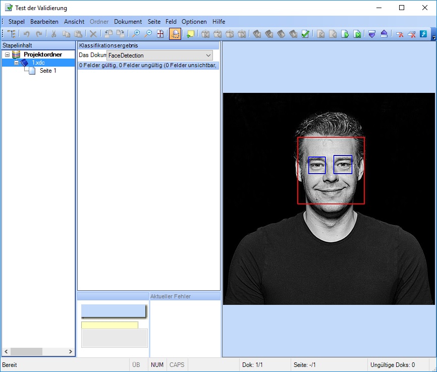 Der Lokator soll nun folgendes machen: Er ruft unsere Bilderkennung auf und tauscht danach das Bild im xDoc aus, so dass wir als Ergebnis das markierte Gesicht sehen: