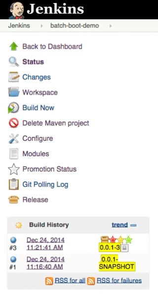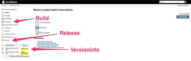 Das obige DSL-Skript enthält die schon gezeigten Build- und Release-Schritte aus dem ersten Teil des Artikels. Um den Releaseprozess in einen Buildjob zu integrieren, nutzen wir das Jenkins Release Plugin , welches einen neuen Menupunkt in die Job UI einfügt (siehe Screenshot). Das „groovyPostBuild“-Element fügt die Versionsnummer der Buildhistorie hinzu (siehe Screenshot), so dass man sie direkt sehen kann, wenn man die Jobansicht öffnet. Um das Ganze direkt mal auszuprobieren, habe ich hier ein Docker-Image erstellt, was alle wichtigen Dinge enthält. Die notwendigen Installationsanweisungen befinden sich ebenfalls bei Github. Alternativ kann man natürlich auch schon einen evtl. bestehenden Jenkins nutzen und die fehlenden Plugins noch nachinstallieren.