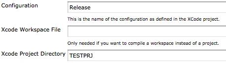 Für einen einfachen Xcode Build mit nur einem Projekt müssen lediglich die folgenden Angaben gemacht werden: