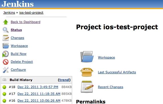 Der iOS Build Job kann nun wie jeder andere Jenkins Job behandelt werden. Ebenso ist es möglich die beim Build entstandenen Artefakte herunterzuladen und auf dem Master zu archivieren. Außerdem kann der Job natürlich in die verschiedenen Views aufgenommen werden, sodass unser Statusmonitor in der Küche ab sofort auch grüne iOS Projekte anzeigt.