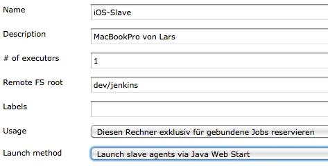 Definition eines neuen iOS Slaves auf dem Jenkins Master