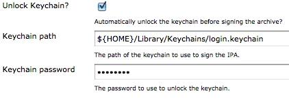 Desweiteren ist es sinnvoll die Option Unlock Keychain zu wählen und die zu verwendenden Keychain zu konfigurieren: