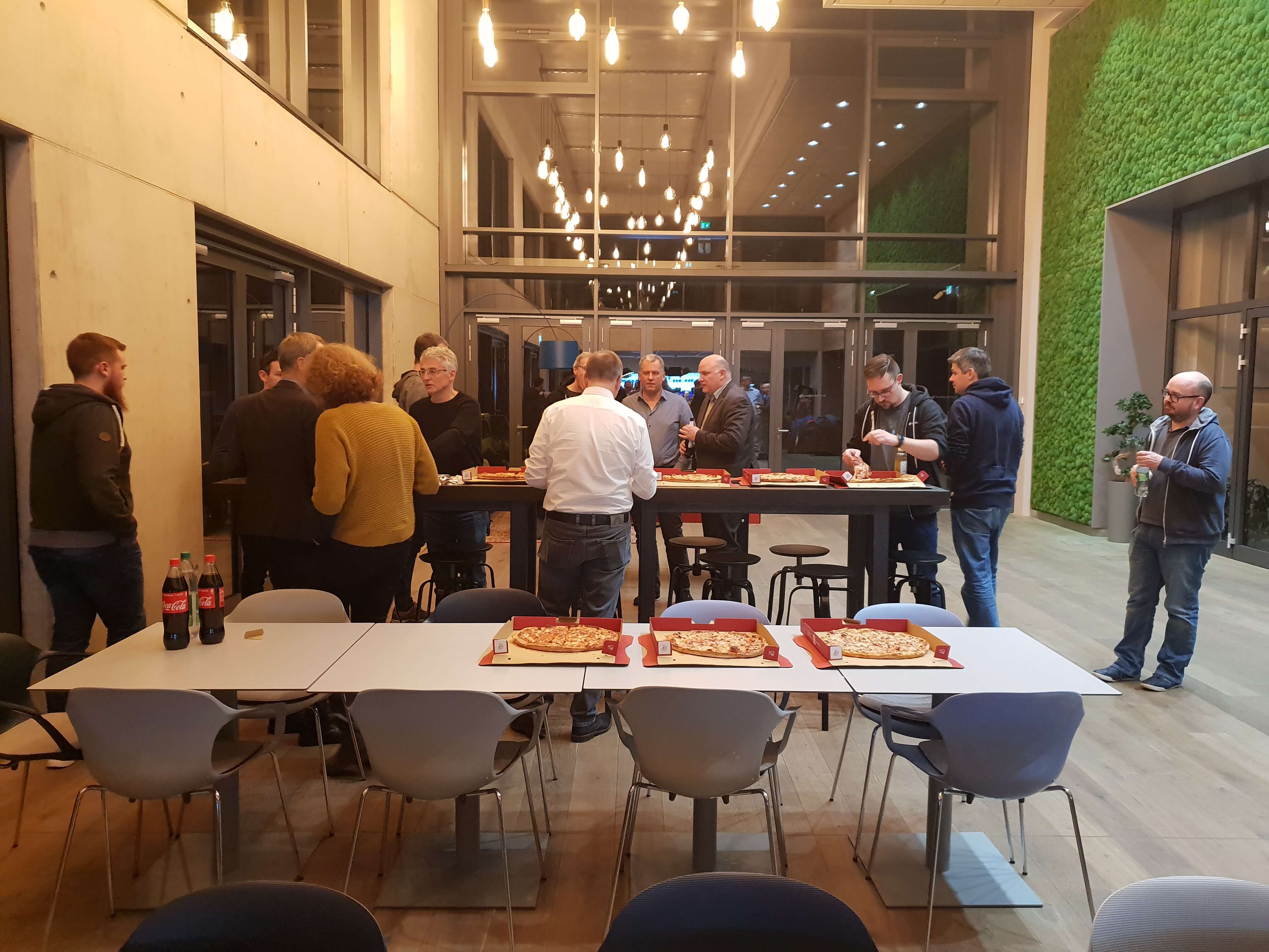 Neben den interessanten Vorträgen war vor allem das anschließende Netzwerken sowie der gemeinsame Erfahrungs- und Meinungsaustausch ein wichtiger Teil des Abends: Bei Pizza und Getränken wurde in lockerer Runde und bei guter Stimmung über die verschiedensten Themen gesprochen und diskutiert.