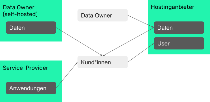 Data Owner stellen selbst oder über einen Hoster Daten bereit. Service Provider bieten nützliche Anwendungen.