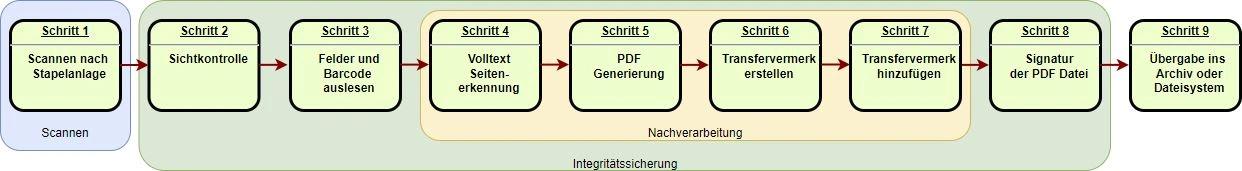 Dokumentenvorbereitung | Scannen | Nachverarbeitung | Integritätssicherung |