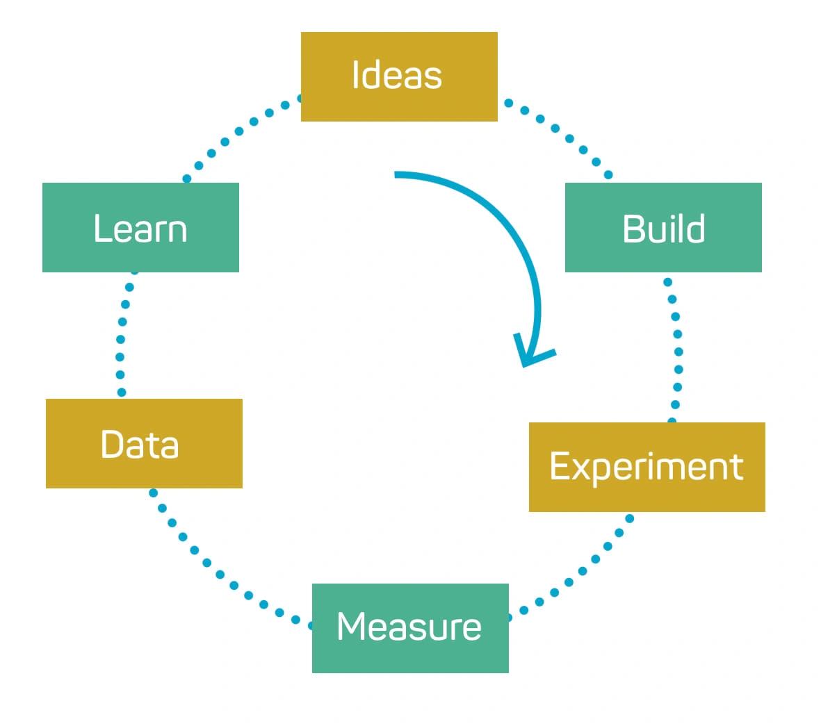 Hypothesen bzw. Ideen zu einem Produkt oder Geschäftsmodell werden formuliert, es wird ein Experiment implementiert, um diese Ideen zu validieren, und die resultierenden Ergebnisse werden als Input für die nächste Iteration verwendet.