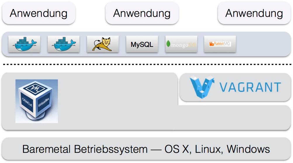 Verteilte, skalierbare, cloudfähige Anwendungen sind die Zukunft der Softwareentwicklung. Moderne Softwareprojekte basieren auf einer Vielzahl von Komponenten, um die fachliche Funktionalität schnell zu implementieren. Dies sind zum Beispiel verschiedene Datenbank- sowie Messaging-Systeme, Suchmaschinen und vieles mehr. Darüber hinaus werden Anwendung zunehmend verteilt betrieben, um Anforderungen an Antwortzeiten, Skalierbarkeit und Ausfallsicherheit gerecht zu werden. Dies stellt Softwareentwickler vor die Herausforderung, alle benötigten Komponenten auf ihrem Entwicklungssystem installieren und konfigurieren zu müssen, um so stets eine aktuelle und produktionsnahe Entwicklungsumgebung zu nutzen zu können. Eine ähnliche Herausforderung stellt sich dem Betriebsteam für die Pflege der Produktionsumgebung.