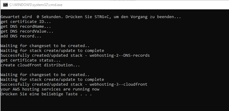 Danach werden die Inhalte des Ordners .\aws-hosting\website nach AWS übertragen und sofort publiziert.