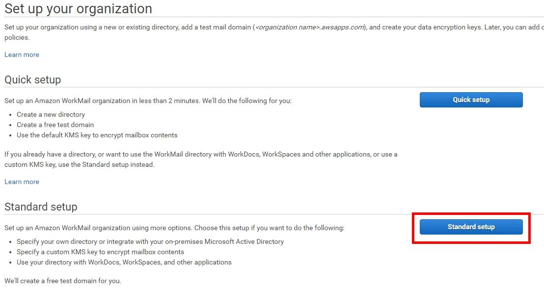 AWS bietet auch eine vollständige Verwaltung der domainspezifischen E-Mail-Adressen an. Die Kosten dafür belaufen sich auf $4 pro E-Mail-Adresse pro Monat. Dafür stehen Ihnen 50 GB Postfachspeicher zur Verfügung.