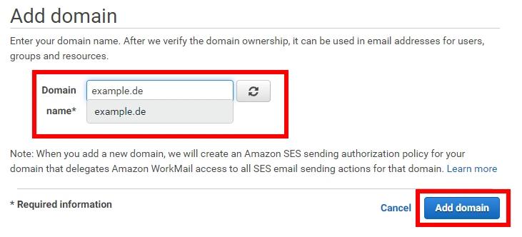 Um ein Postfach zu erstellen, müssen bei AWS zuerst andere Services und Einstellungen konfiguriert werden. Führen Sie die Datei win_create_workmail_directory.bat unter Windows aus. Sie werden aufgefordert, folgende Daten einzugeben: