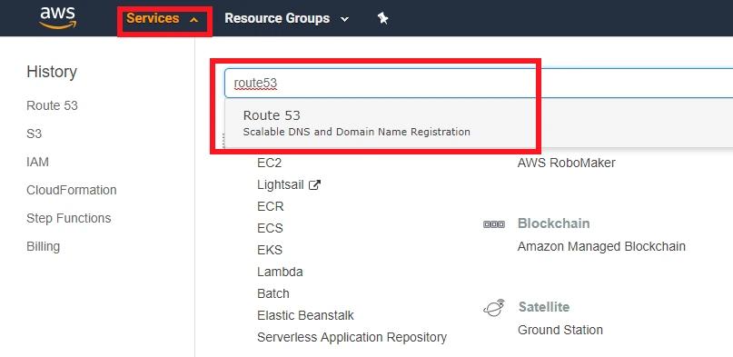 Dafür öffnen Sie bitte den „Route 53“-Service von AWS