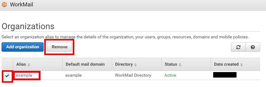 - „AWS-Console“ (Root-Benutzer) -> Region Irland -> Service WorkMail -> Organization löschen („remove“) -> alles löschen inkl. Directory