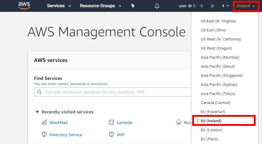 Hinweis: Ihr Postfach wurde in der Region „eu-west-1“ eingerichtet. Server: mobile.mail.eu-west-1.awsapps.com