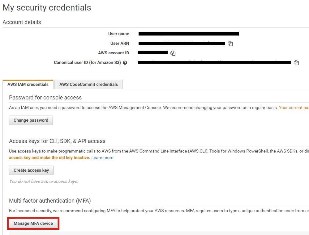 In der Auswahlliste einen der Punkte auswählen. Tipp: Beim „Virtual MFA device“ geht es um den bekannten 6-stelligen Two-Factor Key, der z. B. mit dem Google Authenticator oder Authy generiert werden kann. Wizard Schritt für Schritt durchgehen und abschließen.