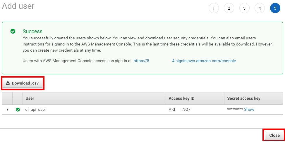 Schritt 5: Unbedingt die Anmeldeinformationen für den neuen Benutzer herunterladen und an einem sicheren Ort speichern.