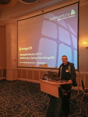 Tobias Trelle , Senior IT Consultant am Standort Düsseldorf, hat eine umfassende Einführung in Spring Data MongoDB gegeben. Spring ist ein in der Java-Welt weit verbreitetes Framework für leichtgewichtige Enterprise Applikationen, welches eine sehr schöne Abstraktionsschicht für Java-Applikationen darstellt. Unterstützung für relationale Datenbanken bietet das Teilprojekt Spring Data JPA schon seit längerem. Im Zuge der NoSQL-Bewegung wurde das Spring Data Projekt , angetrieben von Oliver Gierke , auf diverse NoSQL-Datastores ausgeweitet und es gibt u.a. mit Spring Data MongoDB ein Teilprojekt, welches den Zugriff aus Java-Applikationen heraus auf Dokumente in MongoDB vereinfacht. Die Folien seines Vortrages finden sich auf Slideshare :