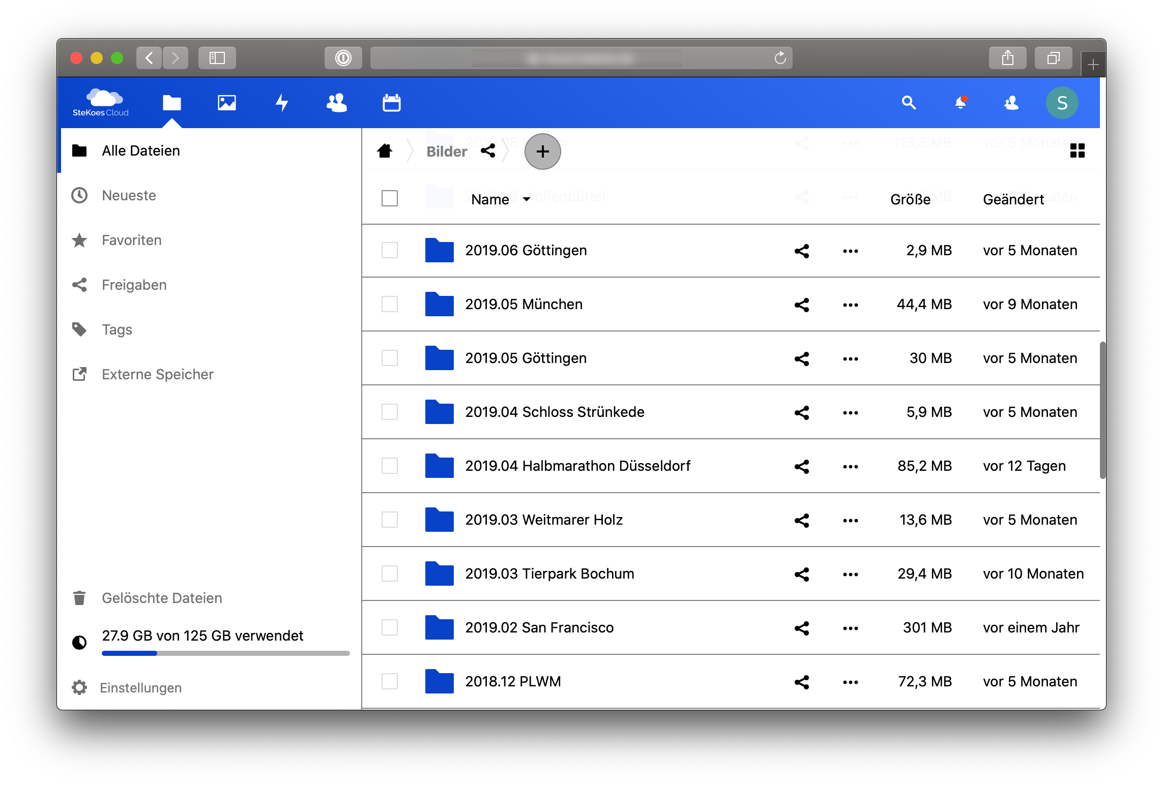 Die Entscheidung fiel also auf eine private Cloud mit einer On-Premise-Installation einer Cloud-Software, die für alle Betriebssysteme eine Synchronisations-Software anbietet. Im Rahmen meiner Recherche bin ich auf NextCloud (einem Fork von OwnCloud ) sowie Seafile gestoßen. Da ich erstere auf meinem bereits vorhandenen PHP- und MySQL-Stack laufen lassen konnte, habe ich mich für diese entschieden, mit dem Import meiner Fotos angefangen und alle Daten in “meine” Cloud auf meinen Server verschoben. Die Entscheidung fiel zudem aus monetären Gründen: Natürlich hätte ich auch ein NAS-System oder ähnliches bei mir aufstellen können, was jedoch zu Rüstkosten geführt hätte, die ich mit dem Einsatz von NextCloud nicht aufbringen musste.