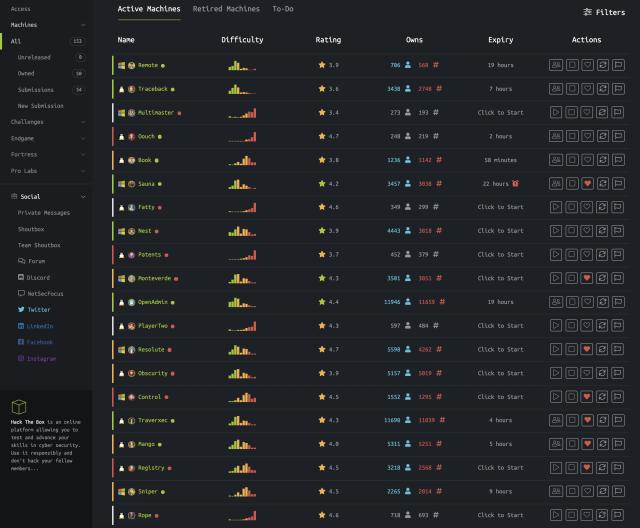 Ein weiterer Aspekt ist, dass eine Plattform wie diese eine großartige Möglichkeit bietet, unsere Fähigkeiten zu schärfen und zu lernen – während man Spaß hat! Einige der Maschinen sind realitätsnah, wie man sie bei einem Penetrationstest sehen oder in einem Bericht über eine Datenbreach nachlesen kann. Andere Maschinen haben ein Thema und erzählen dir eine Geschichte, während du dir deinen Weg durch sie hindurch hackst.