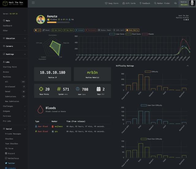 Jede Maschine hat eine Profilseite, die etwas mehr über die Maschine erzählt – zum Beispiel die IP-Adresse, den Ersteller der Maschine und einige Benutzerbewertungen, die bei der Entscheidung helfen können, sich in die Maschine einzuhacken oder es zu unterlassen.