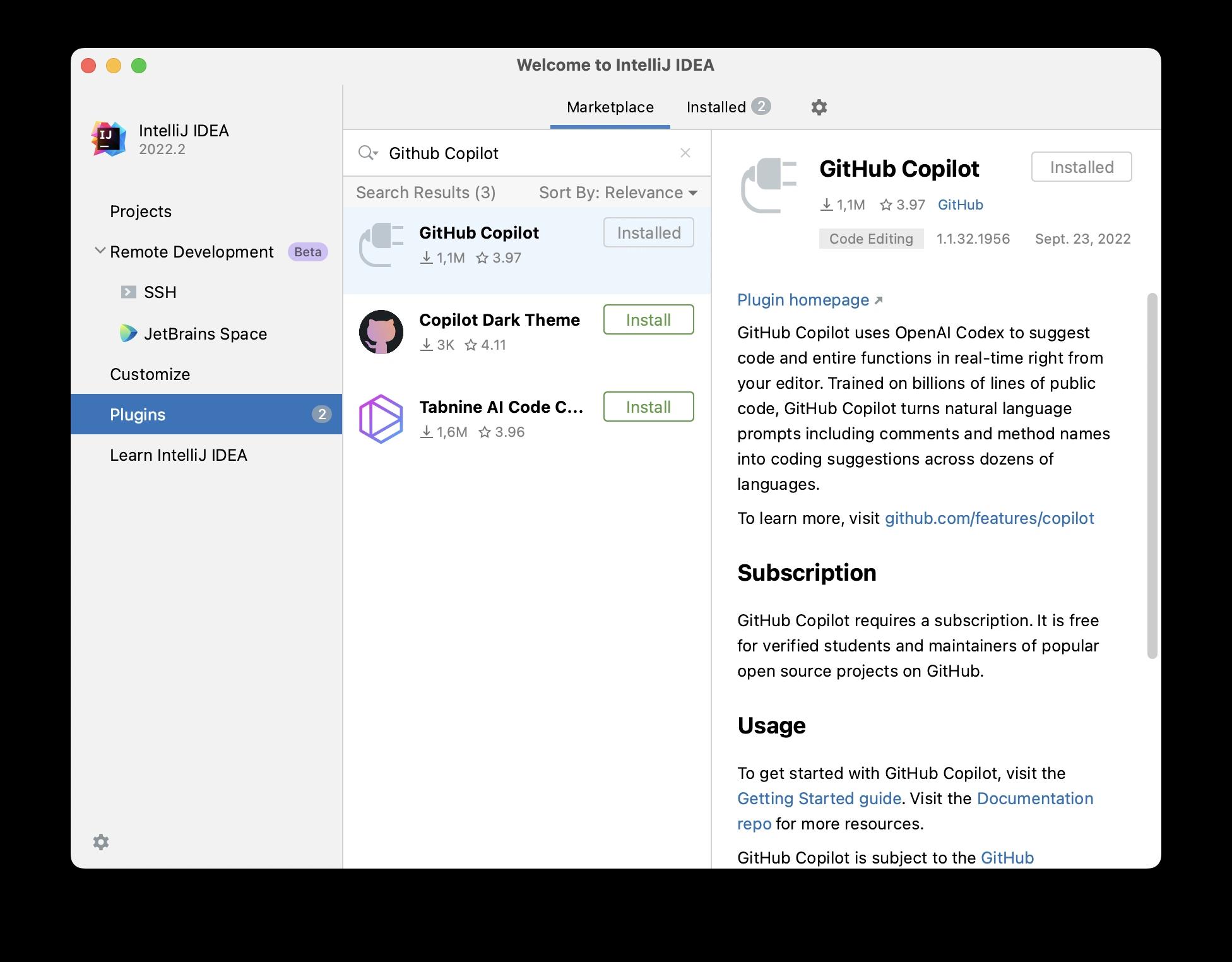 GitHub stellt Copilot als Plugin bereit und ihr könnt ihn mit wenigen Klicks innerhalb der IDE im Pluginfenster installieren.