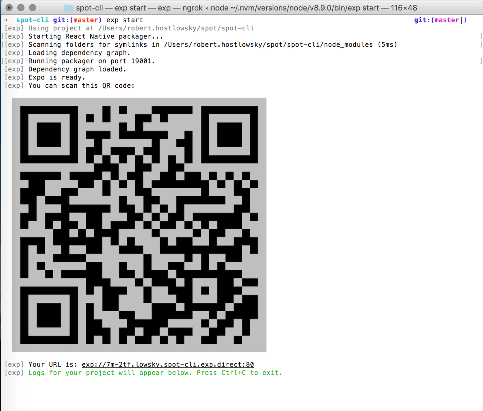 [exp] Your URL is: exp://xxxx.spot-cli.exp.direct:80