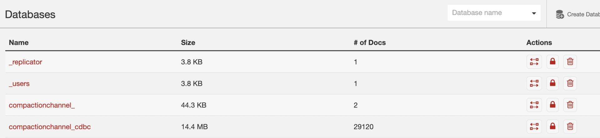 Im Bild unten findet man eine CouchDB-Übersicht anhand eines Hyperledger-Fabric-Knotens mit dem Channel „compactionchannel“ und dem Chaincode „cdbc“. Dies ist nur ein Beispiel, um die CouchDB-Struktur zu demonstrieren und enthält noch nicht viele Daten.