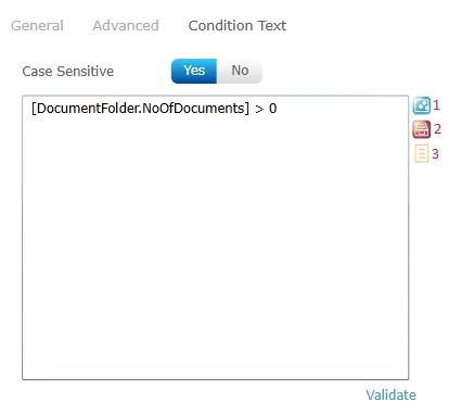 To check, whether there are documents for this job or not, just set this condition text in the decision node: