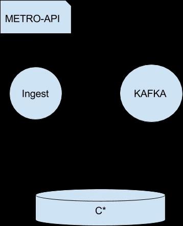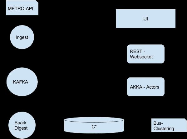 Der Ingest-Service holt die Informationen von der Metro-API und schreibt initial alle Metadaten direkt in Cassandra. Im Anschluss werden zu allen Routen regelmäßig die aktuellen Bus-Positionsdaten in Kafka geschrieben.