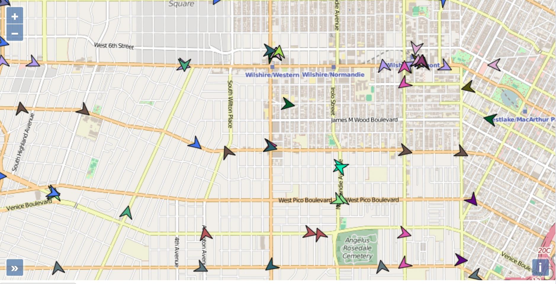 - Positionen der Fahrzeuge für eine auswählbare Vergangenheit (letzten 15 min.)