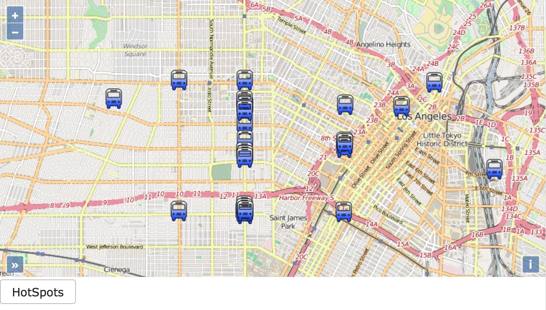 Die mit einem Spark Job berechneten “Bus-Cluster” können über das Frontend bei Bedarf in der Karte dargestellt werden.