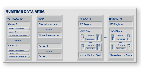 Neben Heap und Method Area, die für alle Threads innerhalb einer JVM zur Verfügung stehen, wird für jeden Java Thread ein eigener Speicherbereich reserviert, auf den dieser dann exklusiven Zugriff hat. Für ein besseres Verständnis sollen die drei Teilbereiche nachfolgend kurz beschrieben werden: