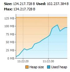 Viele Zahle, alle in Kilobyte. Die Survivor Spaces sind jeweils 2MB, Eden ist bei 16MB, Old auf 40MB, Perm hat 55MB. In Summe kommt dies relativ nahe an die von Windows gemeldete Speichernutzung von 135MB. Die Differenz sind Speicherbereiche außerhalb des Heaps.