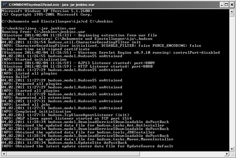 - Starten des Servers im Standalone-Modus: java -jar jenkins.war