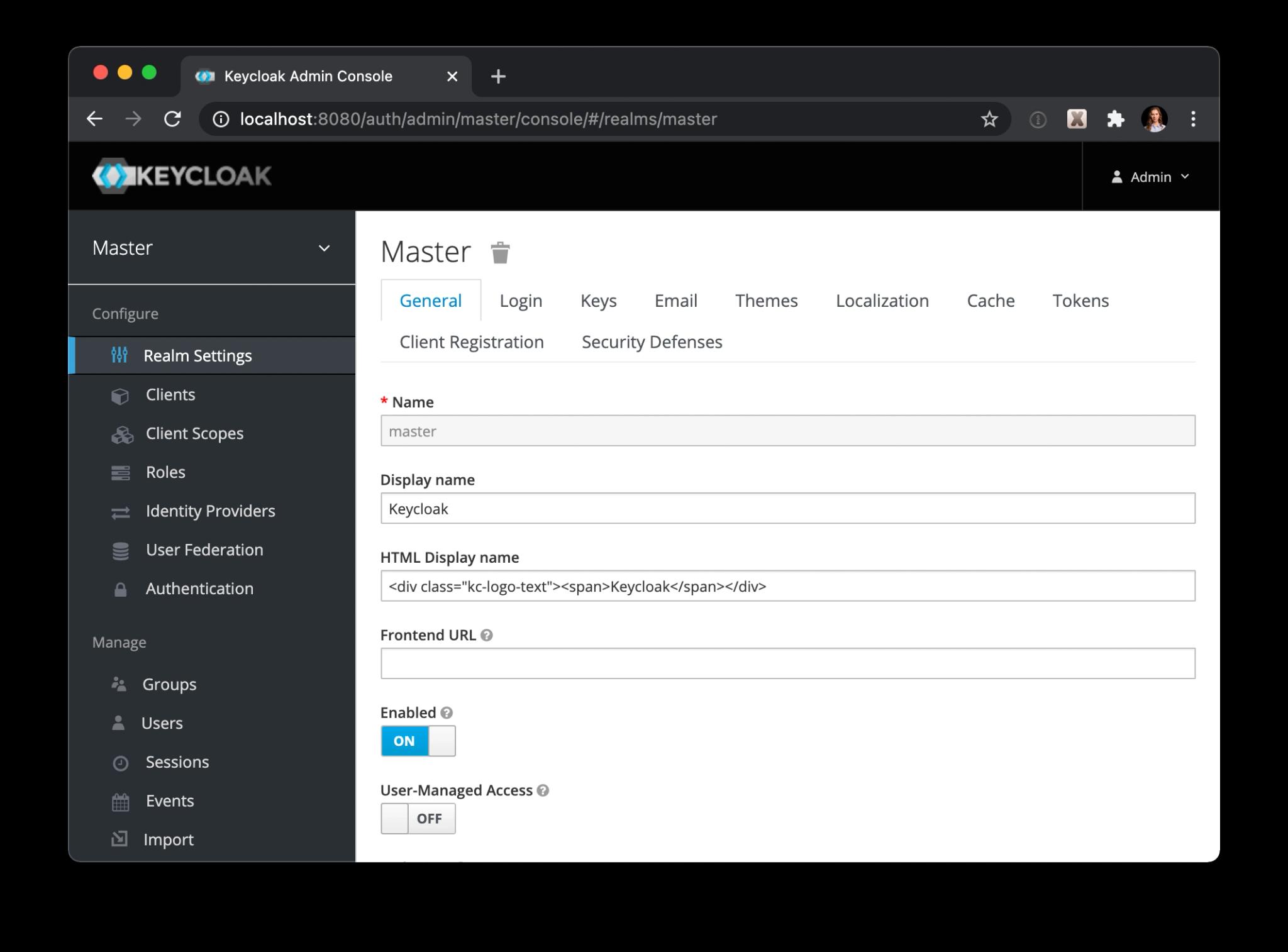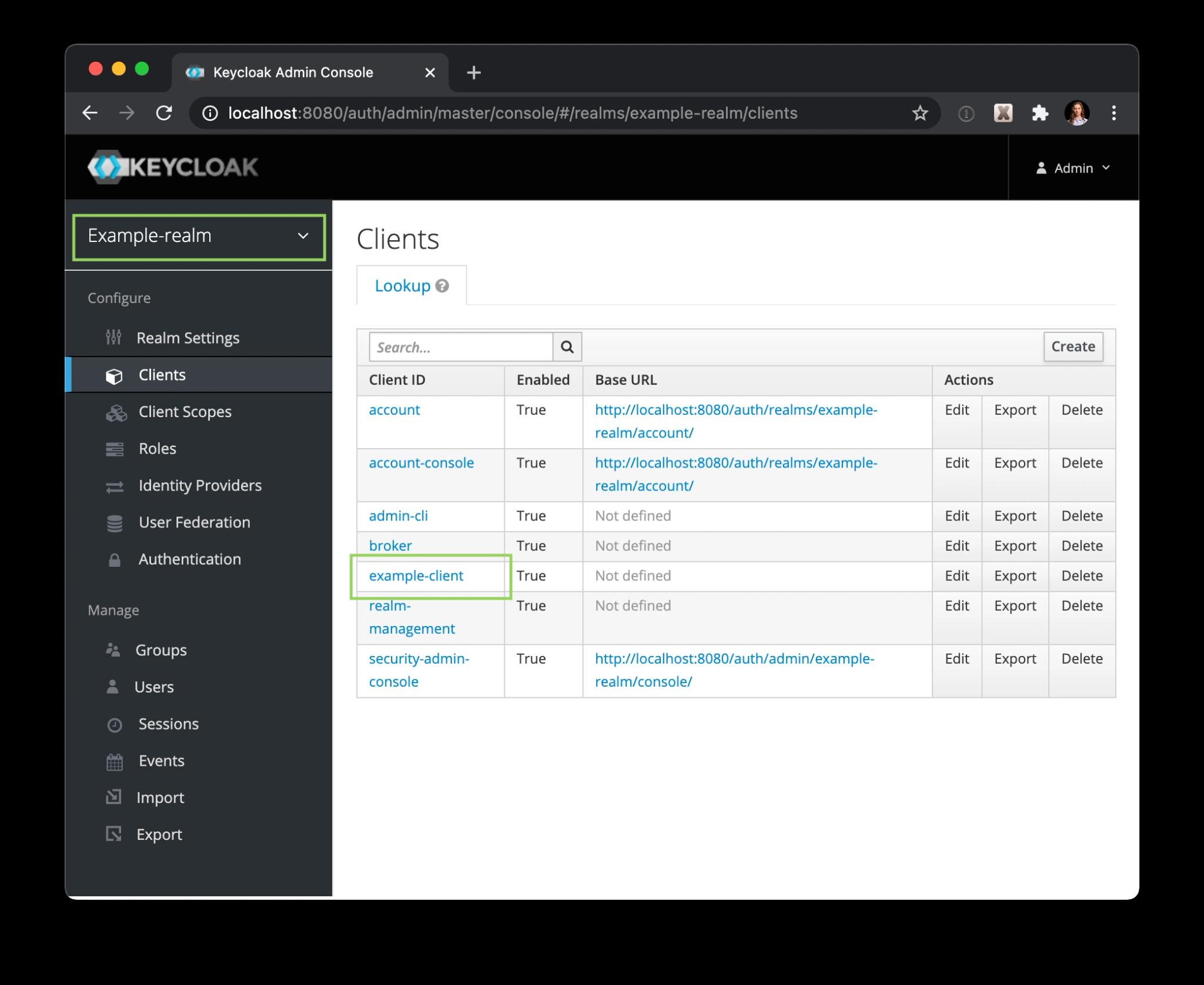 Nun sind der neue Realm und Client im Keycloak unter http://localhost:8080 zu sehen – fertig!