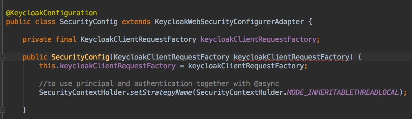 6    public SecurityConfig(KeycloakClientRequestFactory keycloakClientRequestFactory) {