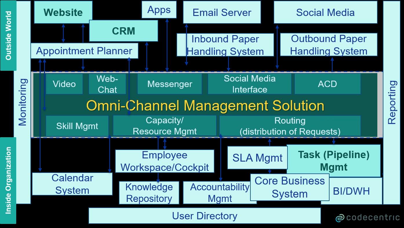 Eine Unternehmensarchitektur sollte dynamisch, transparent und erweiterbar sein, wenn sie mit neuen Technologien oder Geschäftsmöglichkeiten konfrontiert wird. Nur so kann man die Integrität und Skalierbarkeit eines Systems sicherstellen. Das Aufzwingen einer Lösung um der Omni-Channel-Kommunikation willen in einer komplexen IT-Landschaft erfordert nicht nur Änderungen der bestehenden Schnittstellen und des Datenflusses, sondern auch eine anfängliche Bereinigung und Austausch der alten Systeme und Schnittstellen.