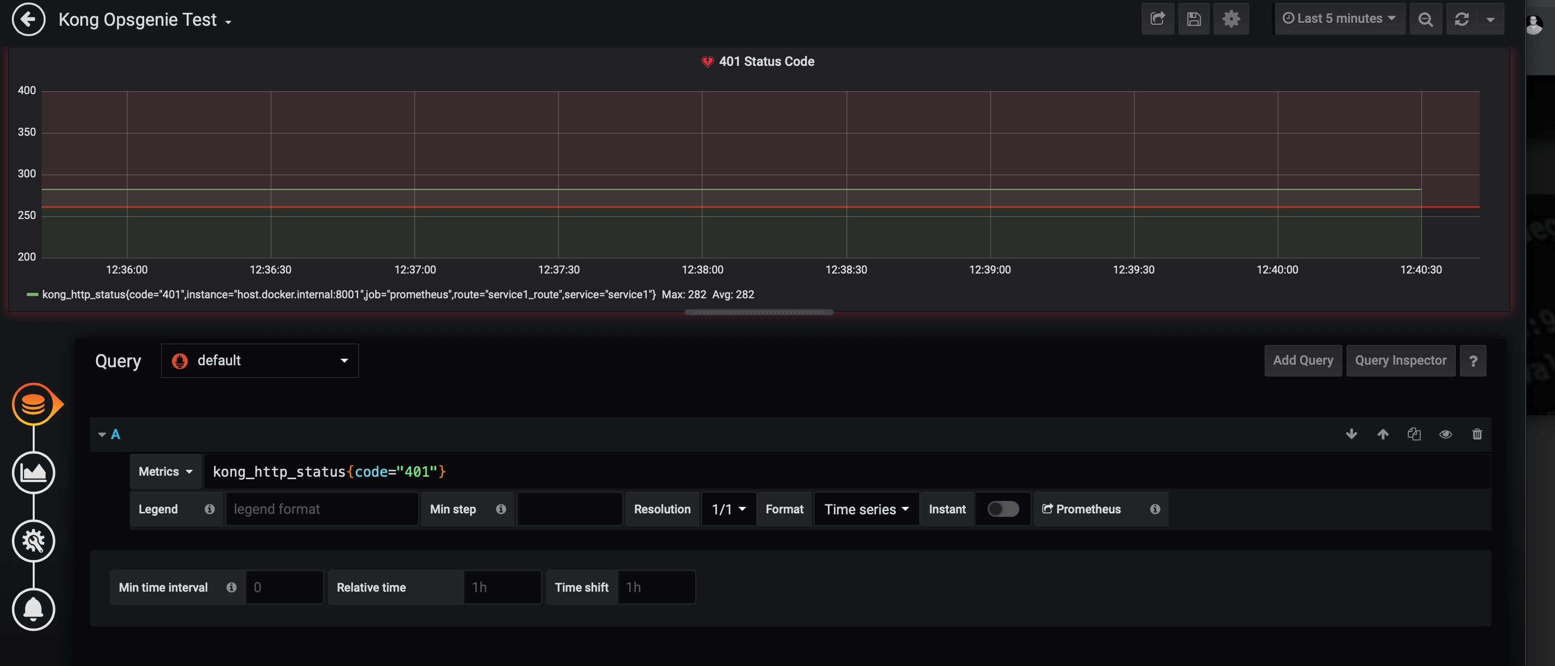 Des Weiteren lege ich noch ein neues Dashboard mit einem neuen Panel an. Als Metrik sollen alle HTTP Status Code vom Typ 401 erfasst werden. Als Alert lege ich einen Schwellenwert fest, der im Beispiel entweder dem Typ max() oder avg() zuzuordnen ist. Zum Schluss muss nur noch der entsprechende Notification Channel ausgewählt werden. Ebenso können zusätzliche Nachrichten oder Tags hinterlegt werden. Somit ist die Konfiguration seitens Grafana abgeschlossen.