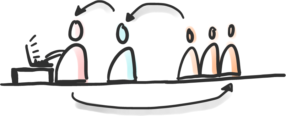 Der Navigator wird zum Driver, der Driver tritt dem Mob bei, und der Nächste aus dem Mob wird zum Navigator. - Driver-Navigator-Mob