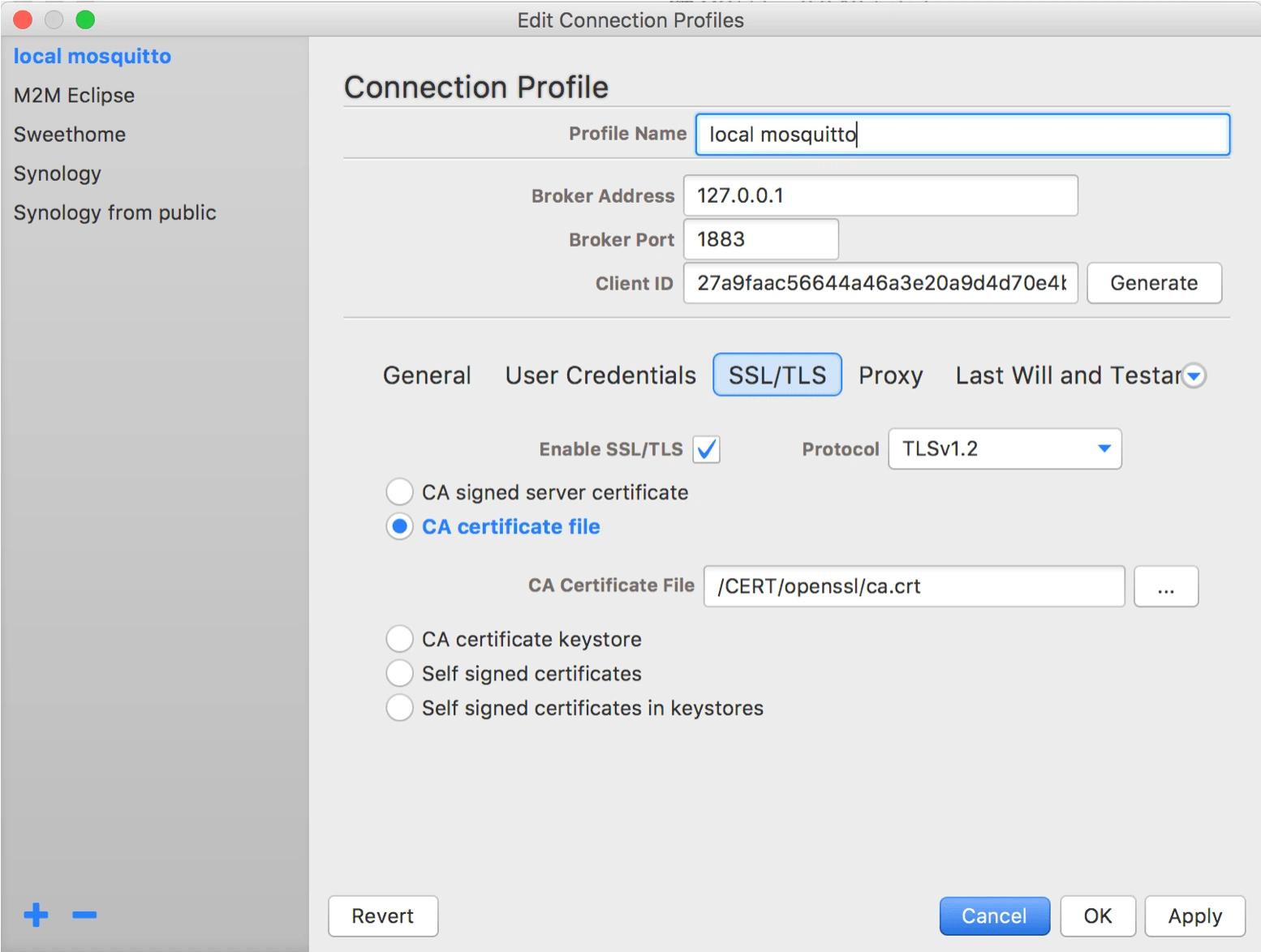Diese Profile können jederzeit angepasst und über den vergebenen Namen ausgewählt werden. Damit kann z. B. über zwei Profile derselbe Broker mit und ohne SSL/TLS oder User-Credentials getestet werden.