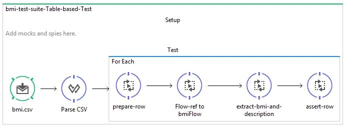 Vergleichen wir den hier gezeigten tabellenbasierten Testfall mit dem einfachen Testfall aus dem letzten Teil der MUnit-Serie: Was hat sich geändert? Gar nicht so viel: Einige Teile sind in Sub Flows gewandert, was man zwecks Übersichtlichkeit auch schon vorher hätte machen können. Einige dieser Sub Flows sind jetzt auch über Flow-Variablen konfigurierbar, was im ersten Teil nicht notwendig war. Ansonsten sind die Änderungen – und damit der Mehraufwand – eher gering: Zwei Schritte zum Lesen und Parsen der CSV-Datei sowie die Schleife (For Each) sind dazugekommen. Statt die XML-Testdaten direkt zu lesen, kommt das Mule-Element Parse Template zum Einsatz.