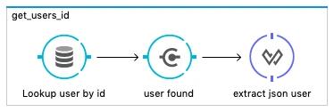 Die eigentliche Implementierung (ich überspringe den Teil, in dem mit dem APIKit der Rumpf der Anwendung gebaut wird) ist ebenfalls sehr einfach: Um einen bestimmten User zu finden, wird eine entsprechende SQL-Query verwendet – mit der id des Users als Parameter. Anschließend wird mit Validate geprüft, ob auch ein User gefunden wurde und wenn ja, der User nach JSON konvertiert. Falls der User nicht gefunden wird (der „Is not empty“ Validator schlägt an) wird eine org.mule.module.apikit.exception.NotFoundException