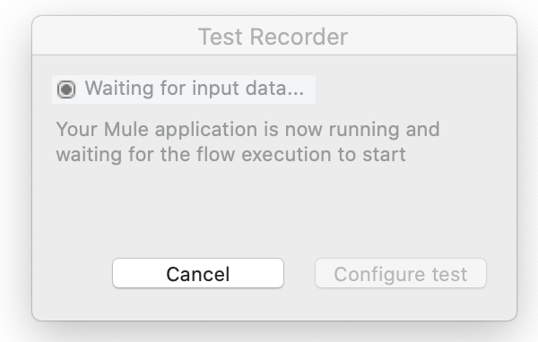 Die Anwendung wird nun in einem Test-Record-Modus gestartet. Nach Abschluss des Vorgangs vermeldet ein Fenster im Anypoint Studio, dass der Test Recorder bereit ist, etwas aufzunehmen.