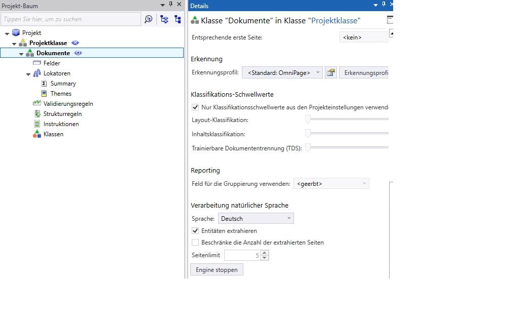 Zunächst möchte ich kurz die Konfiguration der beiden Lokatoren beschreiben. Damit die NLP-Engine funktioniert, muss wie gehabt auf der genutzten Dokumentklassenebene die NLP-Funktionalität aktiviert werden: