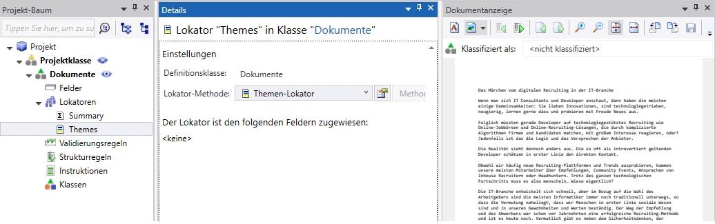 Der Themen-Lokator wird dann wie üblich auf der gewünschten Dokumentenklasse definiert und konfiguriert: