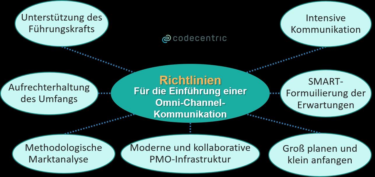 Die folgende Tabelle gibt einen Überblick über die gemeinsamen Herausforderungen (aus den früheren Posts) und einige grobe Maßnahmenvorschläge, die dazu beitragen sollen, deren mögliche problematische Auswirkungen abzumildern. Die wichtigsten und relevantesten Maßnahmen werden als Richtlinien formuliert, um einen Handlungsrahmen und eine Denkweise bei der Umsetzung der Omni-Channel-Annahme (-Adoption) (kurz: OCA) zu bieten.