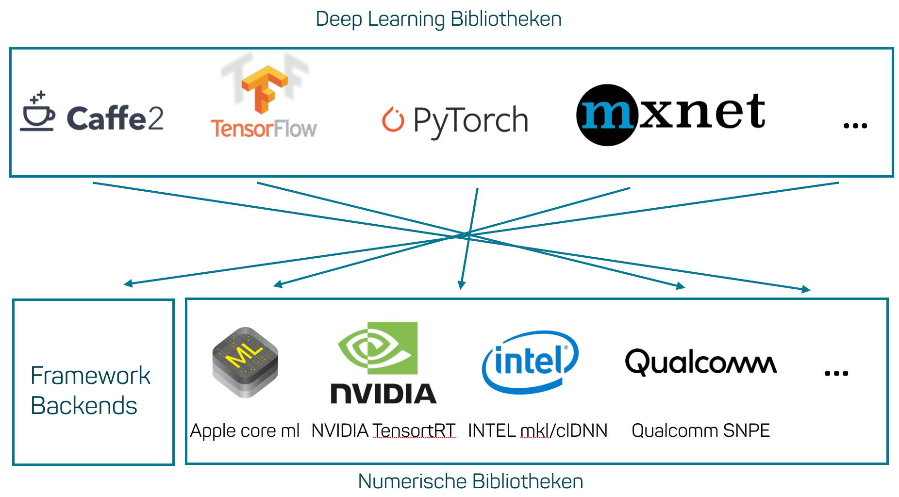 In den letzten Jahren wurde stark auf das Framework theano gesetzt. Heutzutage ist das Framework schon fast ausgestorben und wird nicht mehr weiterentwickelt. Derzeit ist es ungewiss, welche Frameworks sich etablieren und welche wieder verschwinden. Dies liegt under anderem auch daran, dass die Frameworks aus unterschiedlichen Situation heraus entwickelt wurden und spezifischer in der Forschung oder Produktion verwendet werden. Neben den Deep-Learning-Bibliotheken gibt es noch weitere numerische Frameworks, die ebenfalls eine Auswirkung auf die Entwicklung und Laufzeit der Modelle haben. Diese Frameworks werden von Hardware-Herstellern wie bspw. NVIDIA und INTEL entwickelt, und eigenen sich in bestimmten Anwendungsfeldern wie GPU- oder CPU-basiertes Rechnen. Unternehmen, die Deep Learning in das Tagesgeschäft implementieren wollen, sind von der Bandbreite an Möglichkeiten überfordert. Dabei kann die Auswahl eines Frameworks gravierende Auswirkungen auf verschiedene Unternehmensbereiche haben. Die Innovationsgeschwindigkeit kann deutliche Einbußen vernehmen, da sich eventuell nach der Modellentwicklung die Inbetriebnahme eines Modell verzögert. Ein Grund dafür kann sein, dass das gewählte Framework stärker für die Entwicklung als für die Produktion ausgelegt ist.