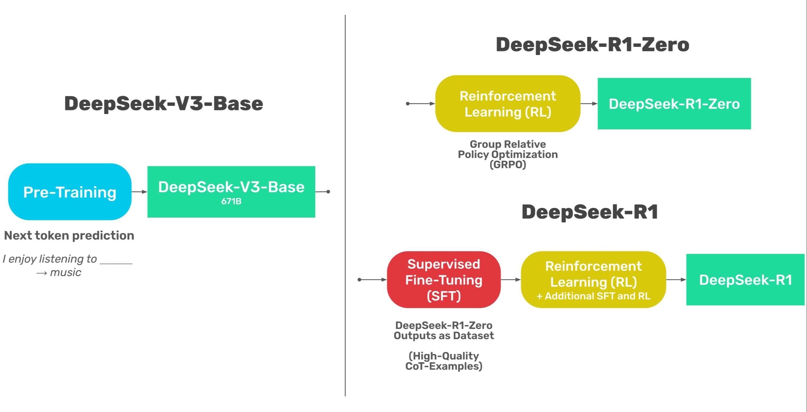Grober Überblick über Trainingspipeline von DeepSeek-R1-Zero und DeepSeek-R1