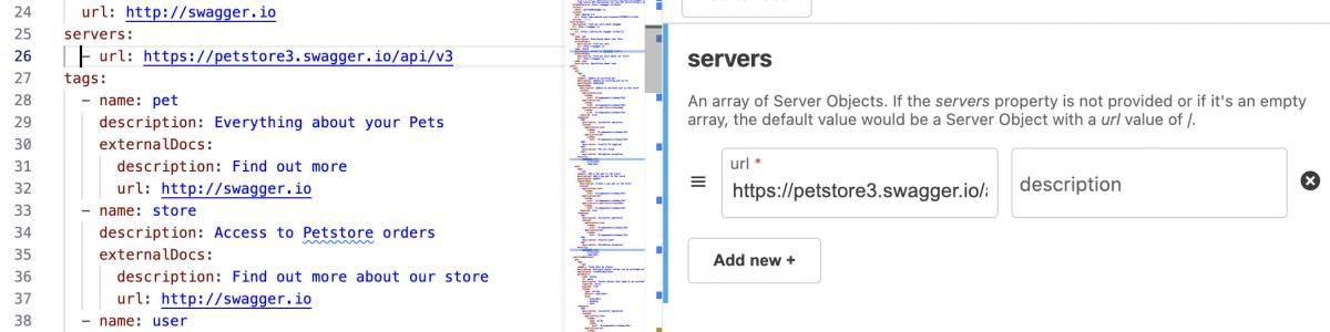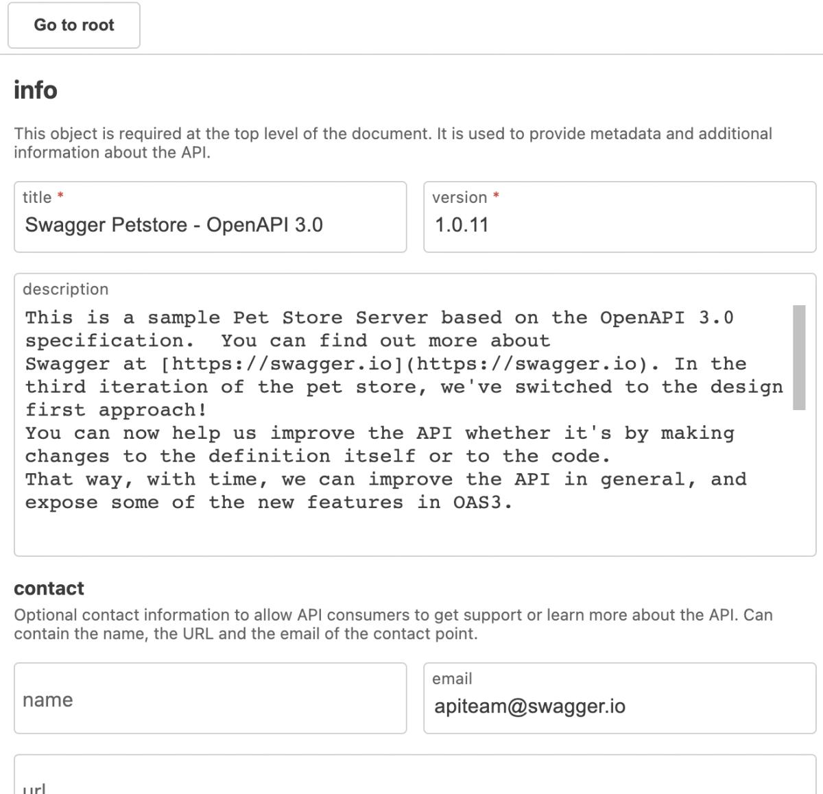 Dieses Phänomen der schlecht verlinkten Formulare ist mehrfach zu finden (zum Beispiel auch für die Tags), allerdings gibt es auch leider Abschnitte, für die tatsächlich keine Formulare zu existieren scheinen. Manchmal bilden die Formulare auch einfach nicht den notwendigen Funktionsumfang des OAS-Abschnitts ab. Nichtsdestotrotz bietet die Redocly-Erweiterung für OpenAPI-Anfänger eine starke Unterstützung.