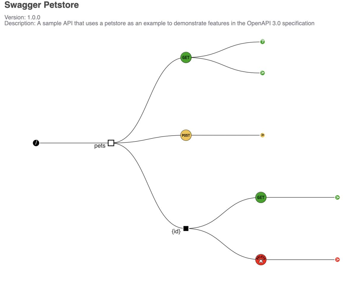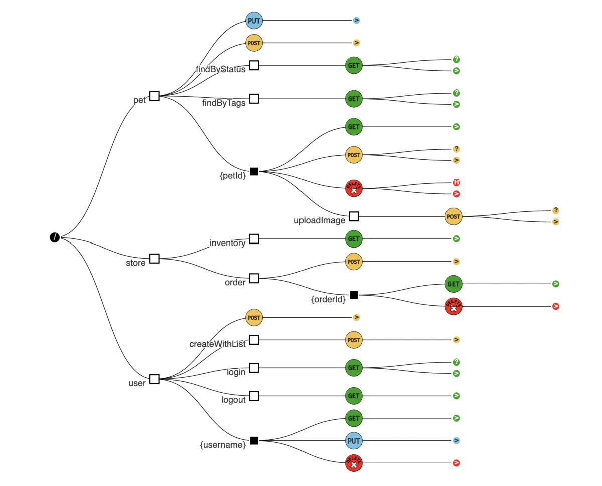 Der Baum für die ausführliche Swagger-Petstore OpenAPI v3.0 Spezifikation. Bei zunehmender Größe der OAS wird der Baum allerdings schnell groß und etwas unübersichtlich.